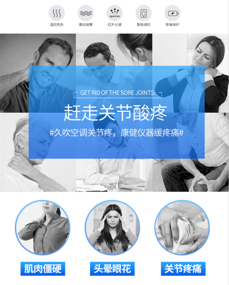 氣壓按摩、微電流理療、熱敷、紅光理療多功能關節(jié)理療儀