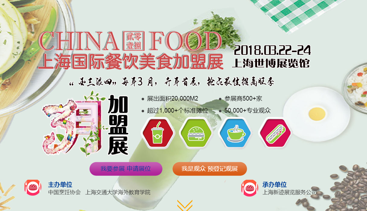 金三銀四,3月招商,4月5月開(kāi)店,專注3月,專注餐飲開(kāi)年首展,創(chuàng)業(yè)贏未來(lái),2018上海國(guó)際餐飲美食加盟展會(huì)必將引爆全民創(chuàng)業(yè)熱潮,讓更多投資者通過(guò)加盟餐飲創(chuàng)業(yè)來(lái)成就美麗夢(mèng)想!