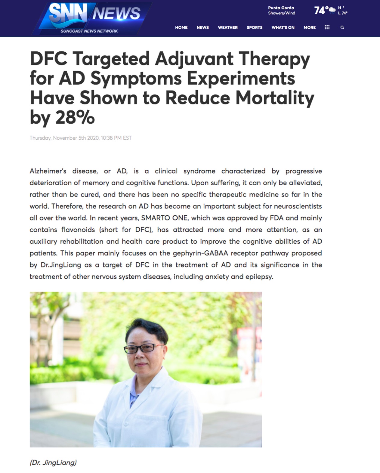 據(jù)SNN美國新聞社報道: 阿爾茨海默癥(Alzheimer's disease)簡稱AD,是一種以記憶功能和認知功能進行性退化為特征的臨床綜合征,發(fā)病后只能緩解不可逆轉(zhuǎn),世界上尚無特效治療藥物,因此針對AD的研究成為全球神經(jīng)科學家潛心研究的重要課題。近年,美國FDA批準主要含有黃酮類化合物(簡稱D黃酮或DFC)的SMARTO ONE作為提升AD病人認知能力的輔助康復保健品,受到越來越多人的關注。本文主要關注Dr.JingLiang提出的gephyrin-GABAA受體通路作為DFC治療阿爾茨海默病的靶點,以及對其它神經(jīng)系統(tǒng)疾病如焦慮癥、癲癇治療上的意義。