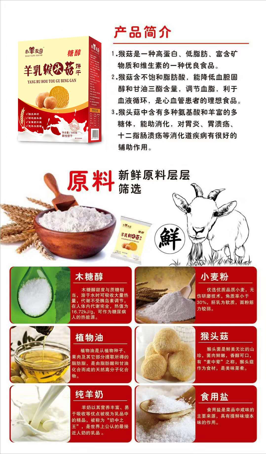 4.本品不添加蔗糖,是用麥芽糖醇調(diào)節(jié)食品甜度,是糖尿人士也可食用的美味羊乳猴菇餅干。